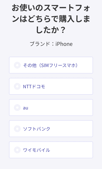 docomo、au、ソフトバンク、ワイモバイルなど…どこから買ったiPhoneかを選択する画面になるので、該当するキャリアを選びます。