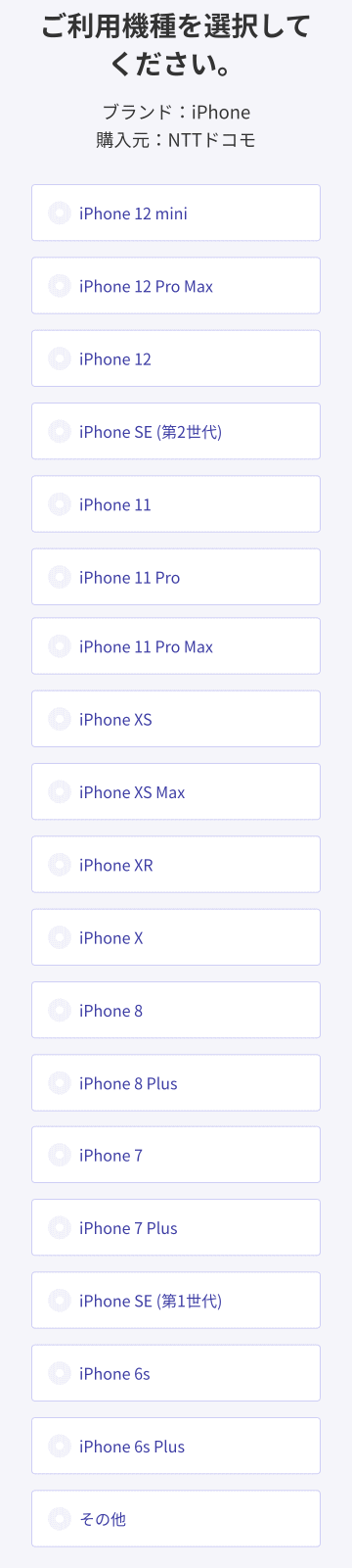 iPhoneの機種一覧の画面になるので、調べたいiPhoneを選択します。