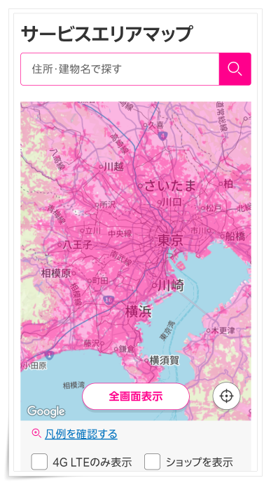 楽天モバイルでは、以下のページから、サービスエリアが、地図で確認できるようになってます。